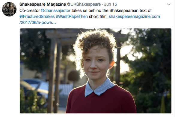 Shakespeare Magazine interviewed Charissa J. Adams regarding the text chosen for the script of “Was it Rape Then?”